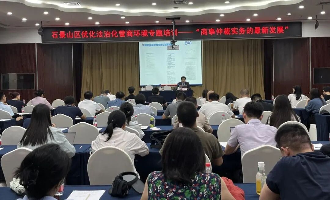 针对本次石景山区优化法治化营商环境专题培训,陈福勇以“商事仲裁实务的最新发展”为主题,通过政策解读和数据分析,详细介绍了北京仲裁委员会多年来的发展情况,具体阐述了营商环境评估中的仲裁指标以及商事仲裁规则,并就律师、法务如何拟定仲裁条款、提高仲裁代理水平等实务问题进行了讲解。