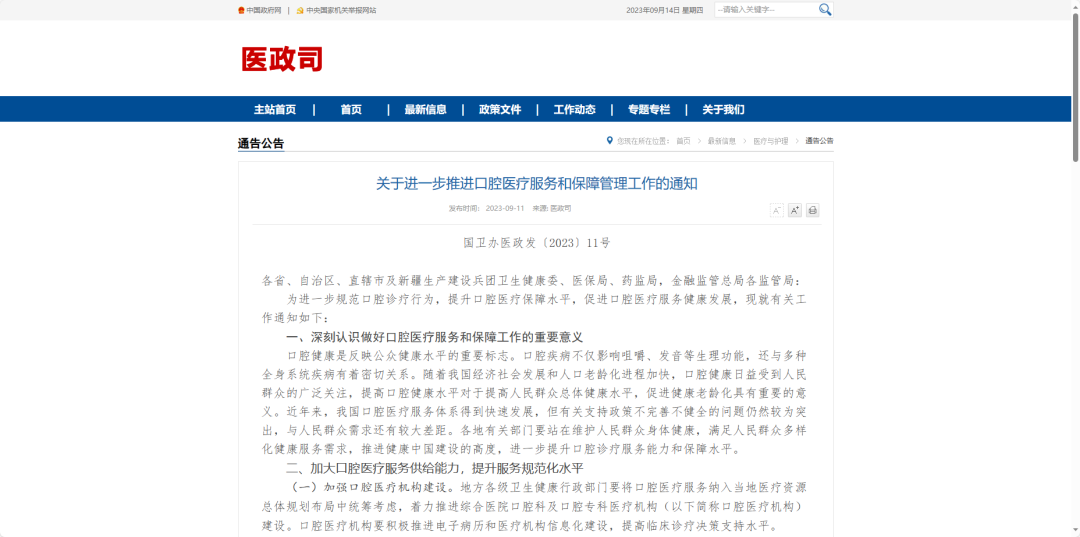 为进一步规范口腔诊疗行为,提升口腔医疗保障水平,促进口腔医疗服务健康发展,现就有关工作通知如下: